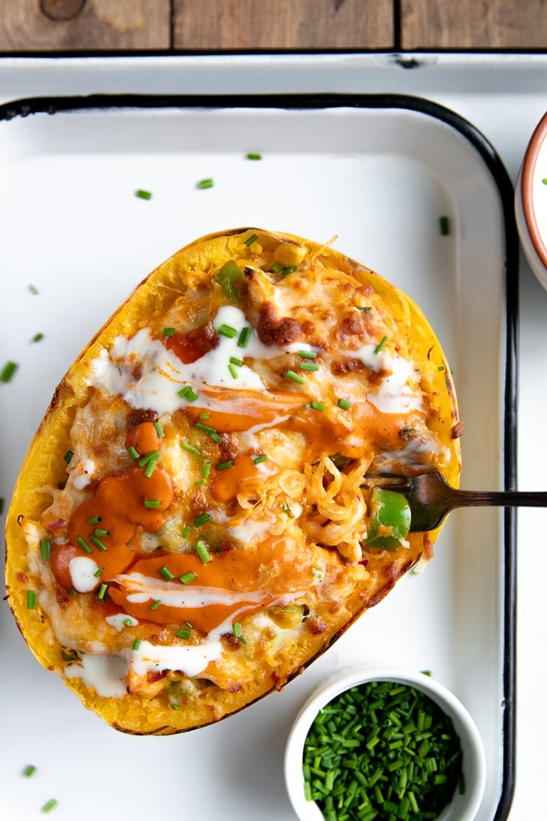 Cheesy Buffalo Chicken Spaghetti Squash Recipe