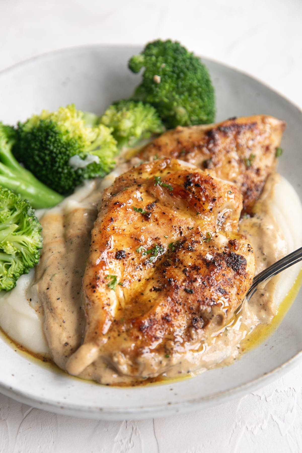 This Ranch Chicken recipe is an easy one-pan dinner filled with juicy pan-seared chicken breasts smothered in a rich, comforting, and creamy ranch gravy. It’s quick to make and perfect over mashed potatoes or buttery egg noodles to soak up all that irresistible gravy!