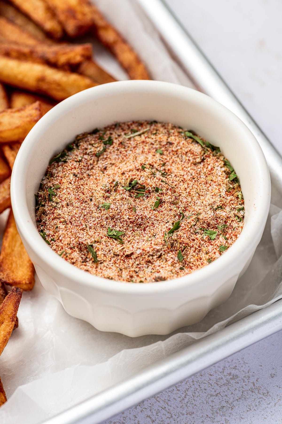 This recipe makes about 5 tablespoons of seasoning, or enough for 4 to 5 pounds of fries. For smaller portions, you can scale the recipe down, or double it to keep extra seasoning stored for up to 3 months in an airtight jar.